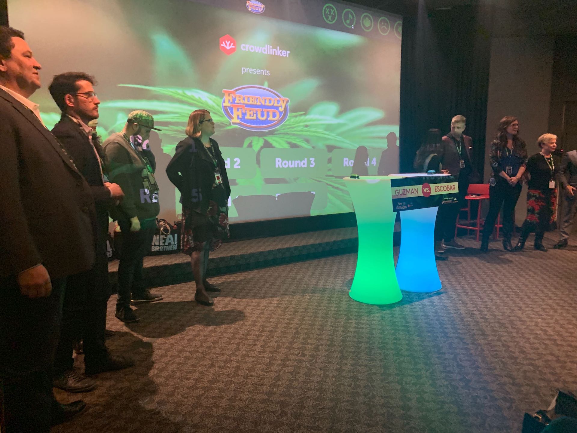 The Guzman and Escobar families (playfully named by Marilyn, after the infamous cannabis-cultivating Colombian cartels) battled it out in a game of Friendly Feud trivia, where they answered an assortment of questions related to cannabis culture.