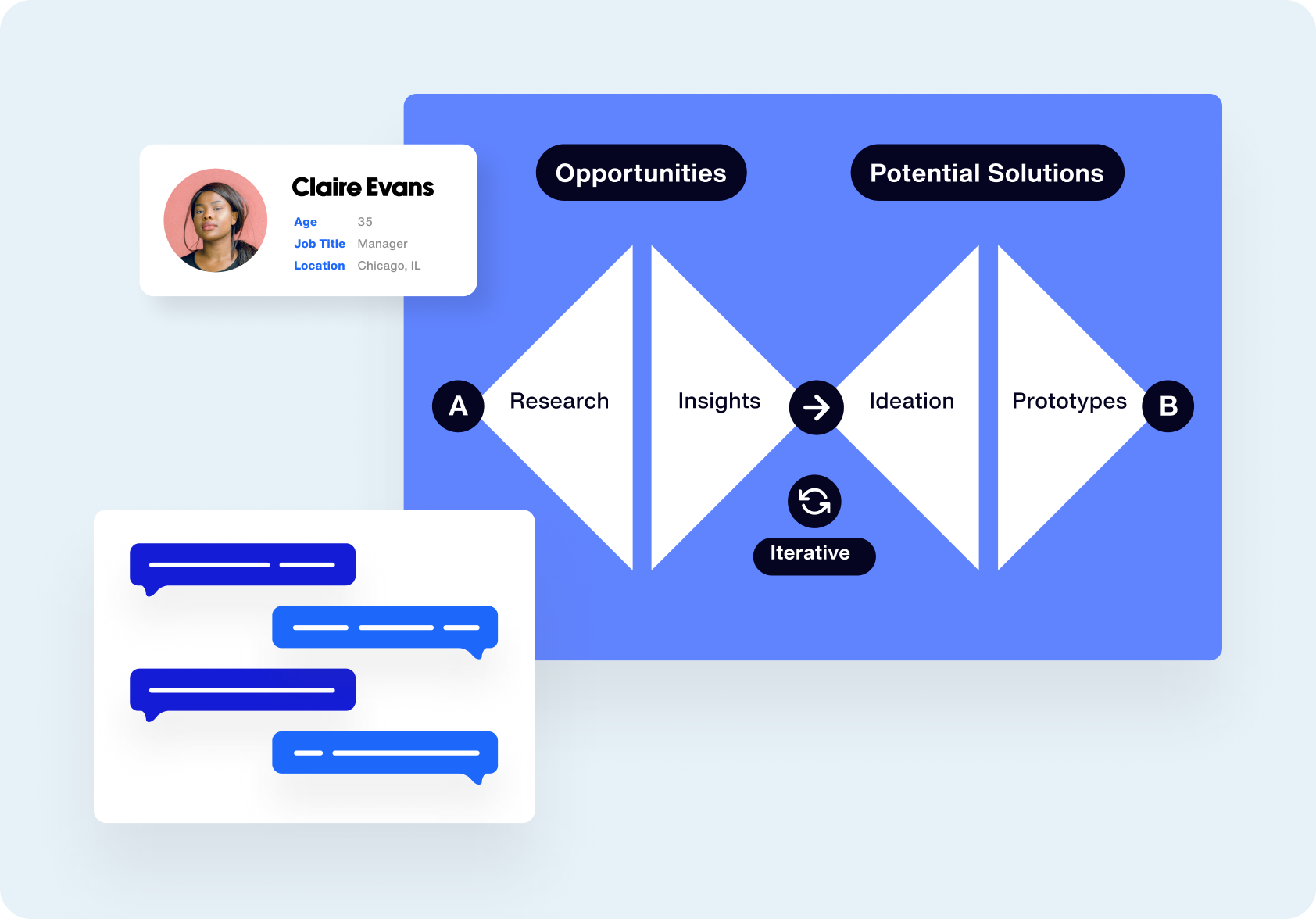 Repeatable experiments, Dual track agile, 4-step framework, Proven Playbooks, Prototypes, Reduce risk, Low/no code solutions, Tech stack recommendations, Co-creation with your user